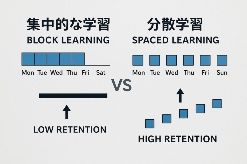 同じ学習時間でも、配り方で成果は激変。36日"毎日2.5h"で330→605→645。なぜ週末集中より毎日が伸びる?実データと研究をもとに、再現できる分散学習プランを公開。 📊 毎日2.5時間 vs 週末17.5時間|分散学習でTOEIC 275点UP 本文では①点が伸びた実データ... -