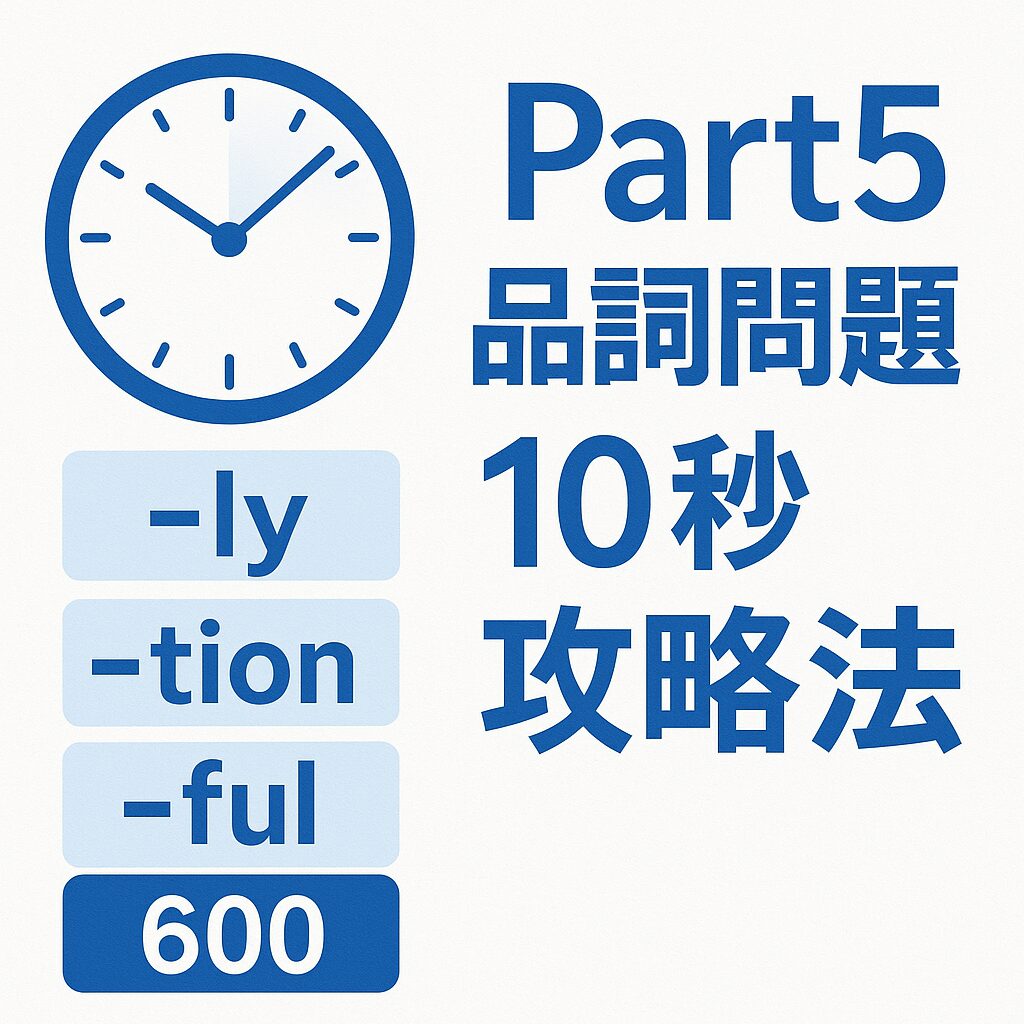TOEIC Part5の全体像|品詞問題から始める600点攻略 📚 品詞問題攻略シリーズ全4回【全記事公開済み】 このシリーズは全4回で、すべて公開済みです。順番に読むことで品詞問題を完全攻略できます。 ✅ 第1回(本記事):Part5の全体像と品詞問題の重要性 ... -